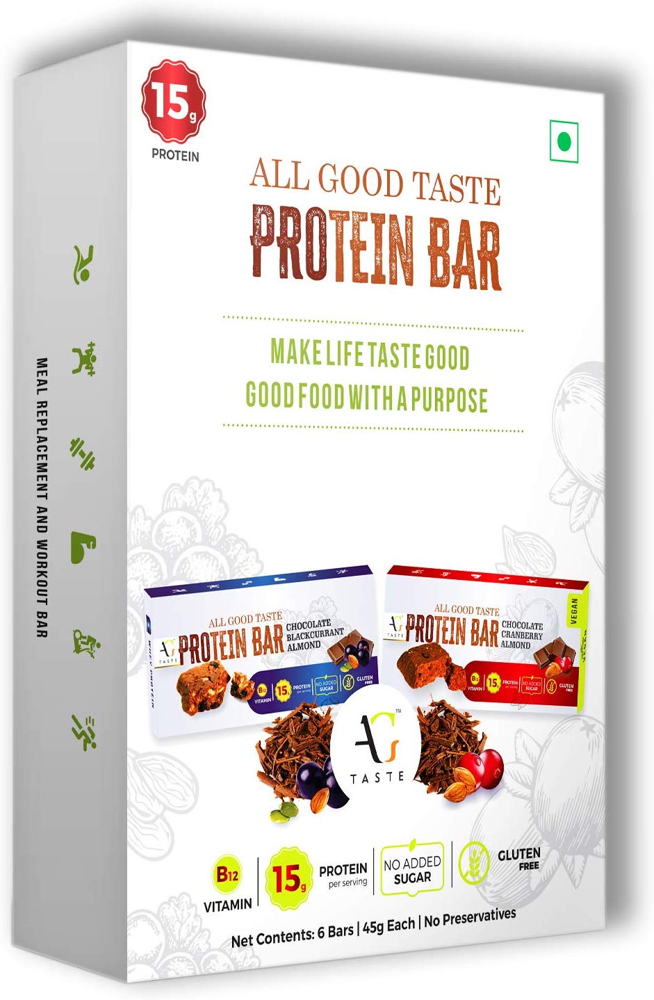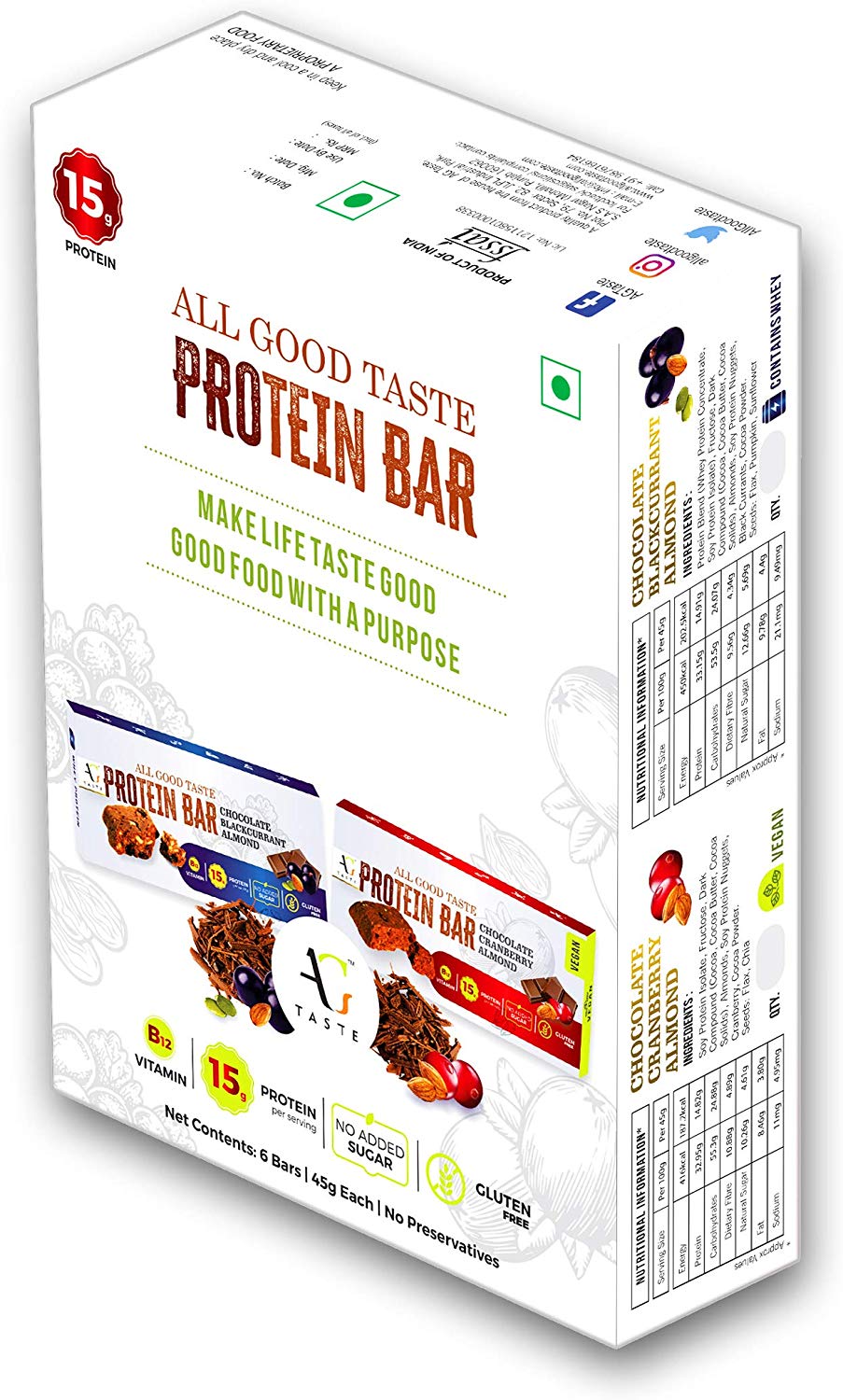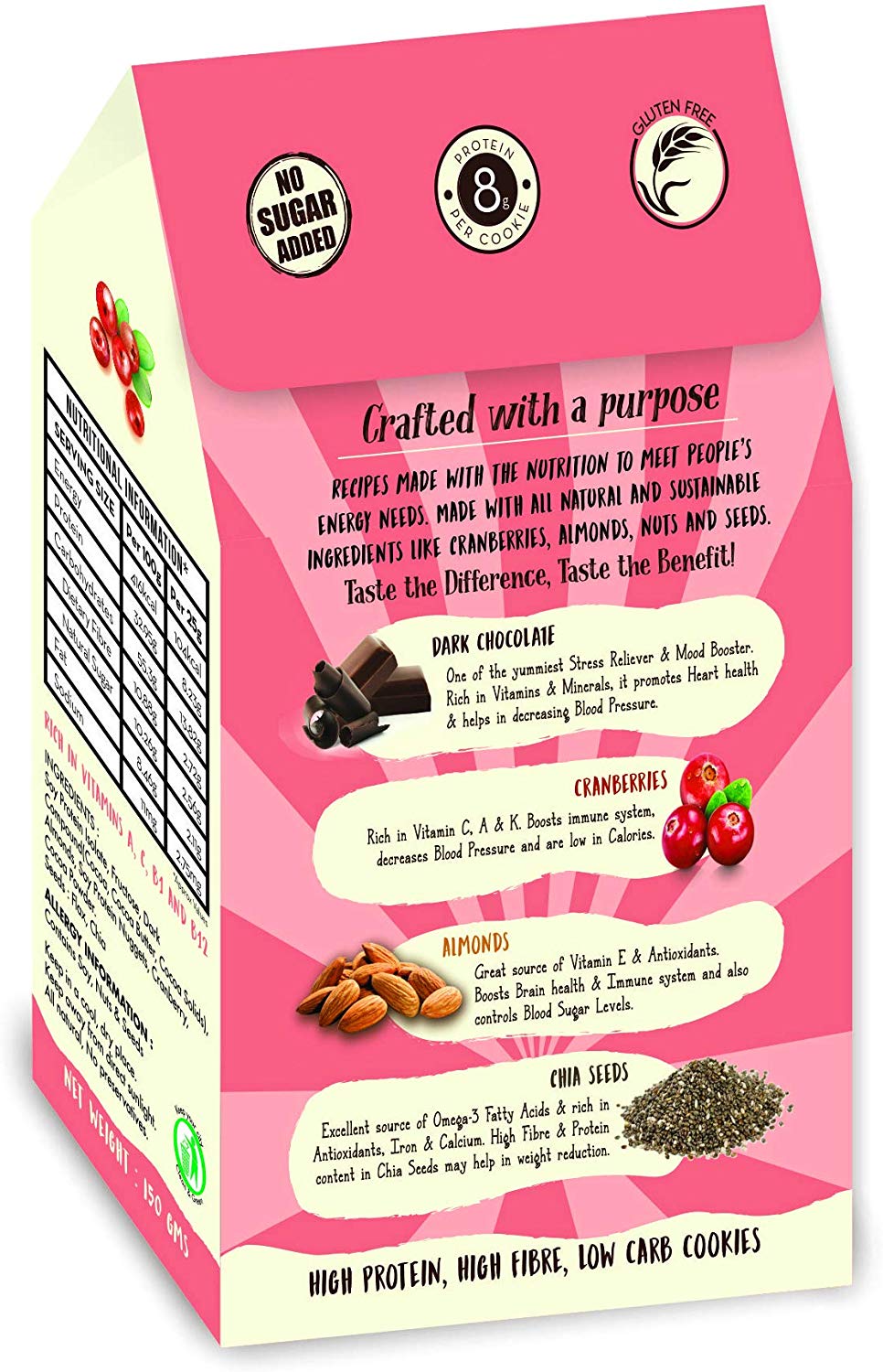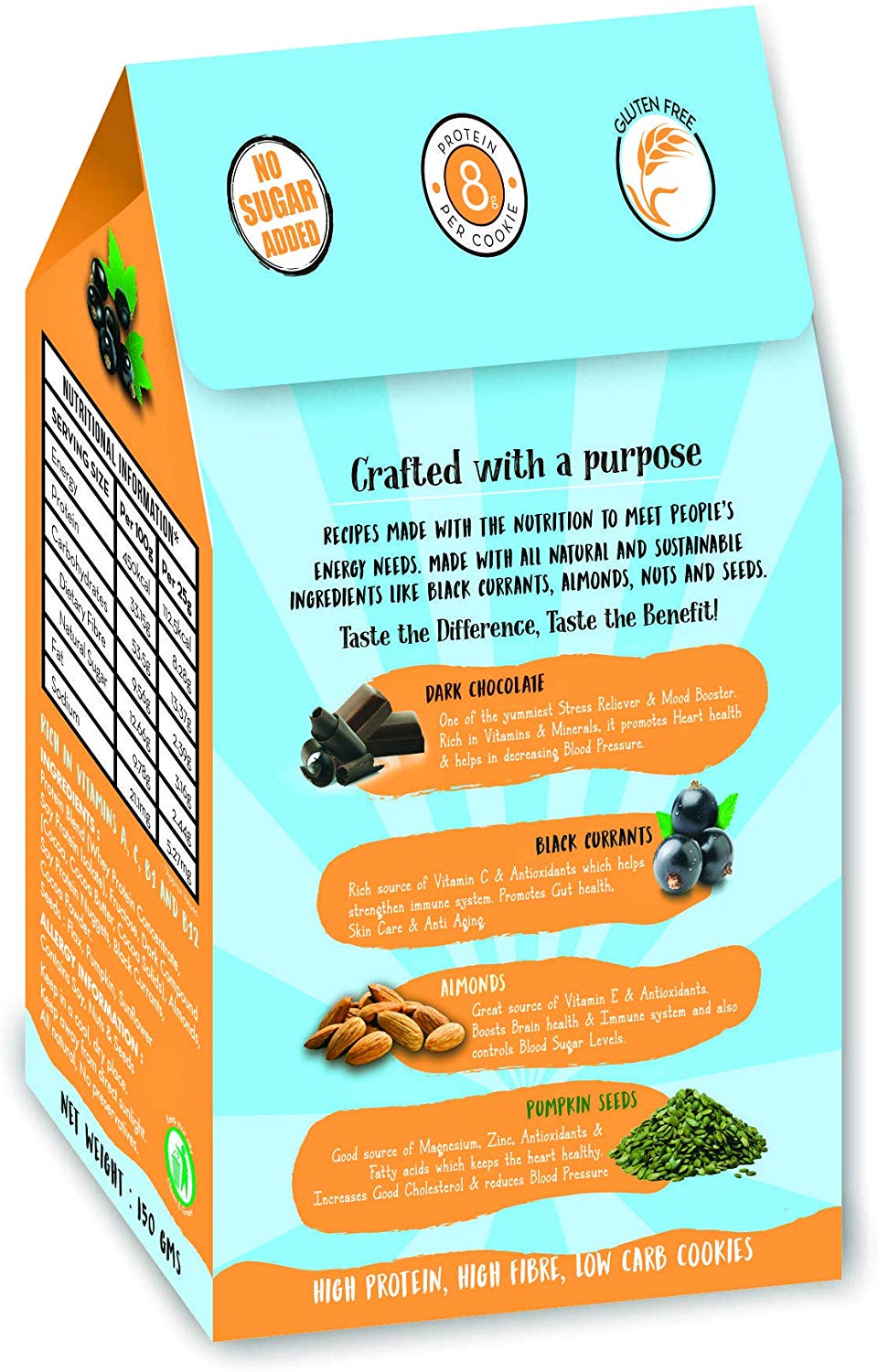 Zesty mixture of Almonds, Chocolate, Black Currants, Crisped Rice, Orange Peel and Chia Seeds bound in honey and oats for a snack that satisfies from the first bite till the very last..