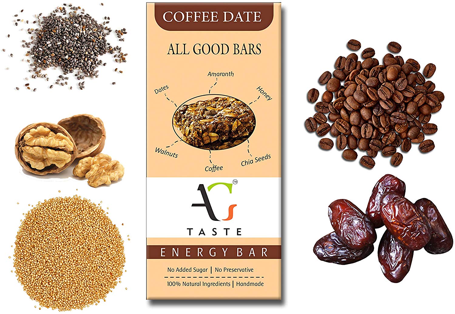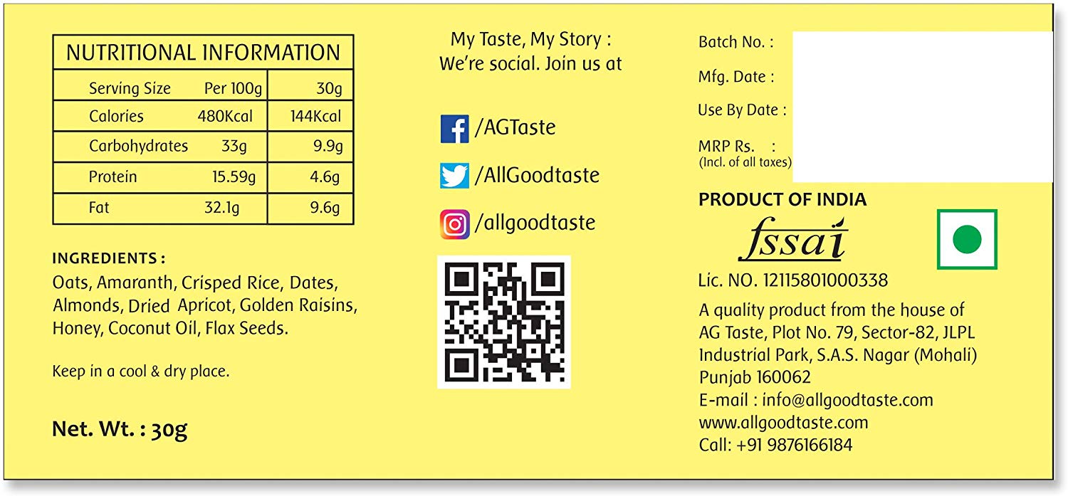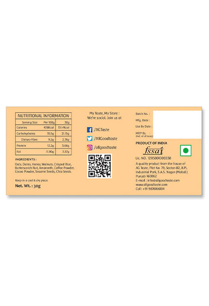 Coffee Date is made of dates, butterscotch nuts, amaranth, coffee powder, cocoa powder, sesame seeds, chia seeds, walnuts and oats mixed with the natural goodness of honey. Its crunchy texture and amazing blend of flavors can help you get throughout the day. These are healthy munchies, better than the calorie-filled snacks which can help keep you energized.